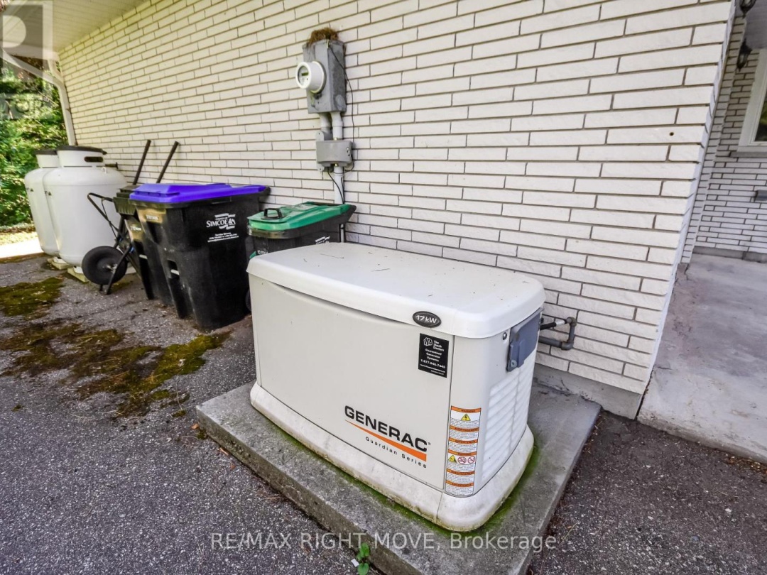 This spacious brick home offers comfort, character, and flexibility, featuring 3 bedrooms and 1.5 bathrooms, including a primary suite with ensuite. Originally designed with three bedrooms upstairs, it has been converted to two oversized rooms but can easily be returned to its original layout. The main floor includes a sunken living room with beautiful hardwood floors, abundant natural light, and the convenience of main floor laundry. Downstairs, you'll find a fully finished rec room/family room with a cozy fireplace, along with an additional bedroom or ideal home office perfect for professionals or guests. An oversized attached garage provides ample space for parking and storage, while the detached heated 34' x 20' shop is ideal for hobbyists or trades. Modern upgrades include a newer furnace, updated 200-amp electrical service, and a Generac backup power system. Set on a full acre dotted with mature trees, this property offers privacy and space in a quiet, desirable neighbourhood just minutes from Coldwater, Orillia, and premier ski destinations like Mt. St. Louis and Horseshoe Resort.