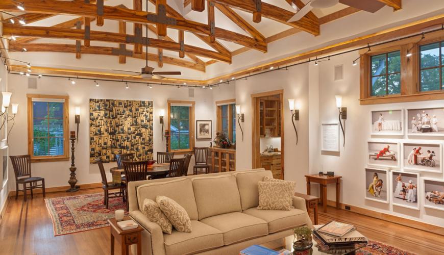 Neutral earth-tone colours are also popular with browns, greens and beiges that reflect the surrounding land and trees. A comfy brown leather couch, plaids in browns or greens and animal patterns also reflect the Muskoka lifestyle. With animal pictures on the walls, antlers and images of moose used in lamps and decorations you can bring another side of nature into your home or cottage.
